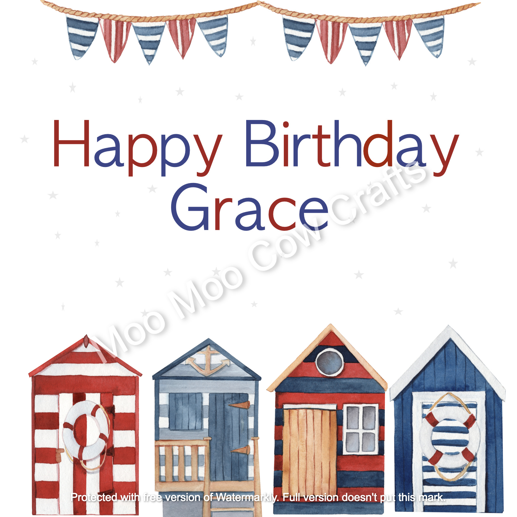 Beach Huts – Personalised Handmade Birthday Card