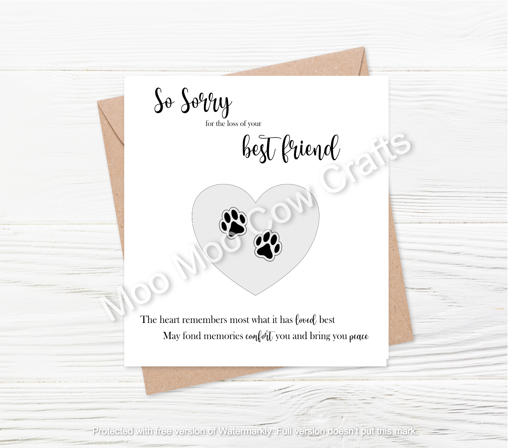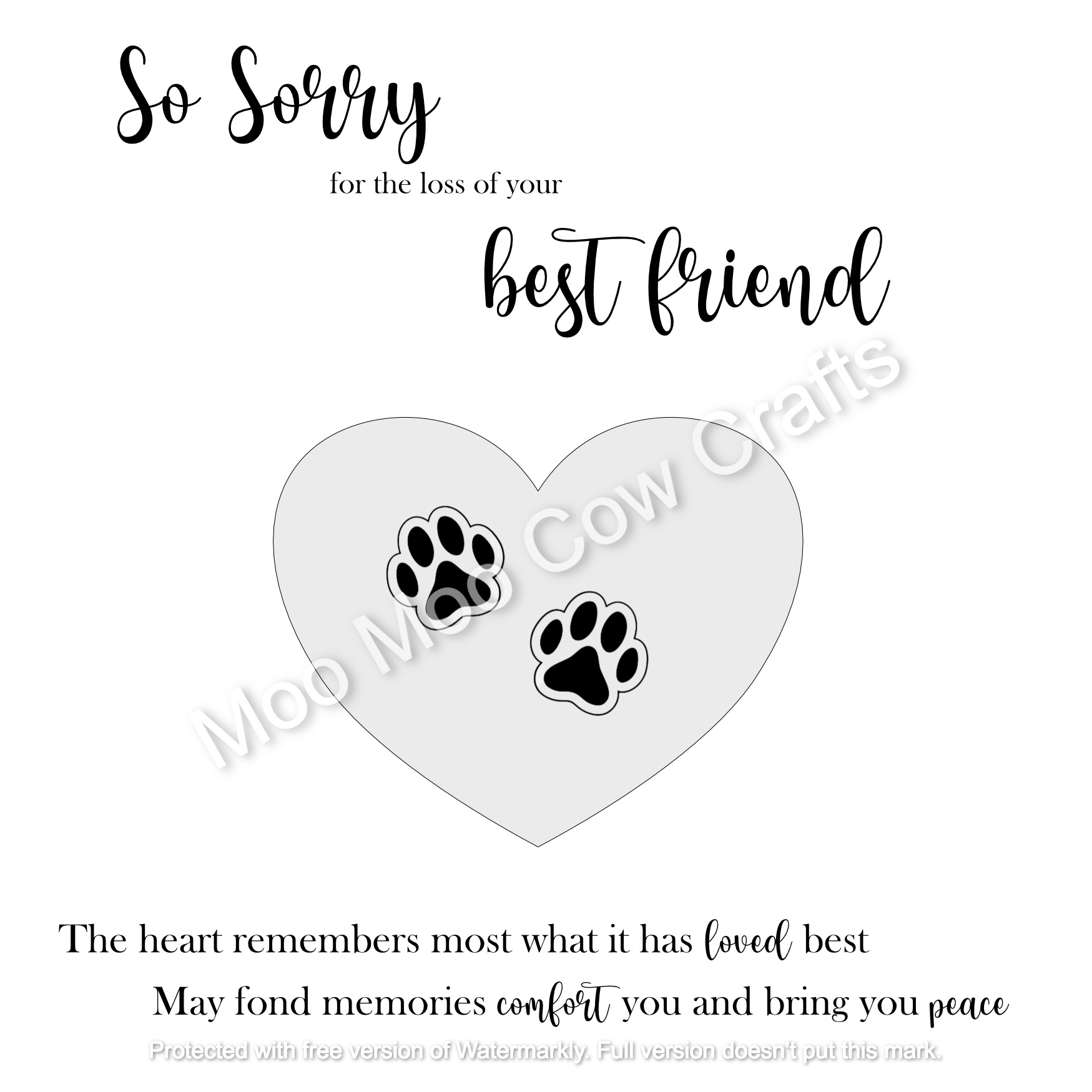 Pets are part of the family and the loss is real and painful and our best friend sympathy card is perfect to express your sympathy on their loss. The card is available with personalisation or blank as shown.