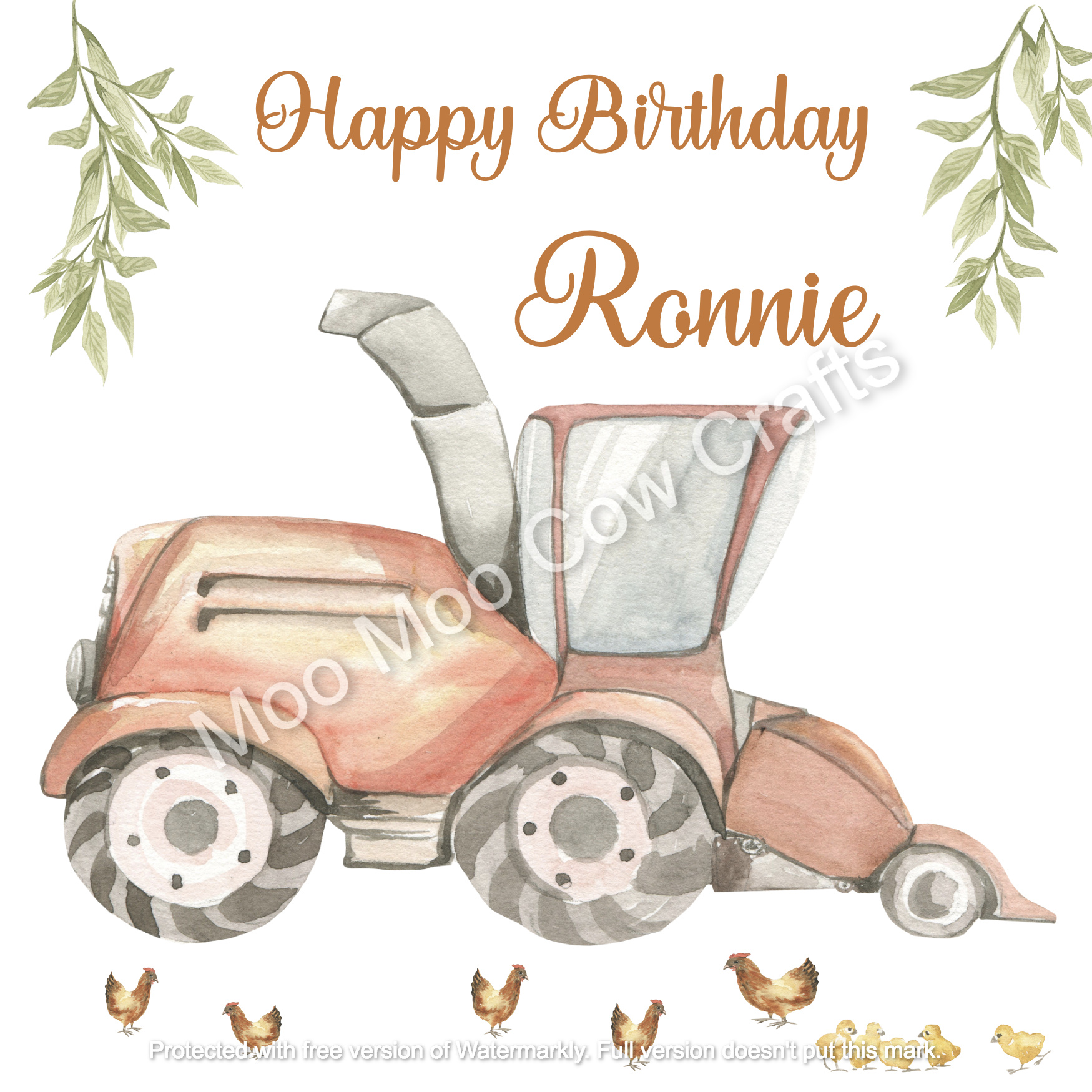 Tractor and chooks is one of the Down on the Farm range of birthday cards and can be personalised.