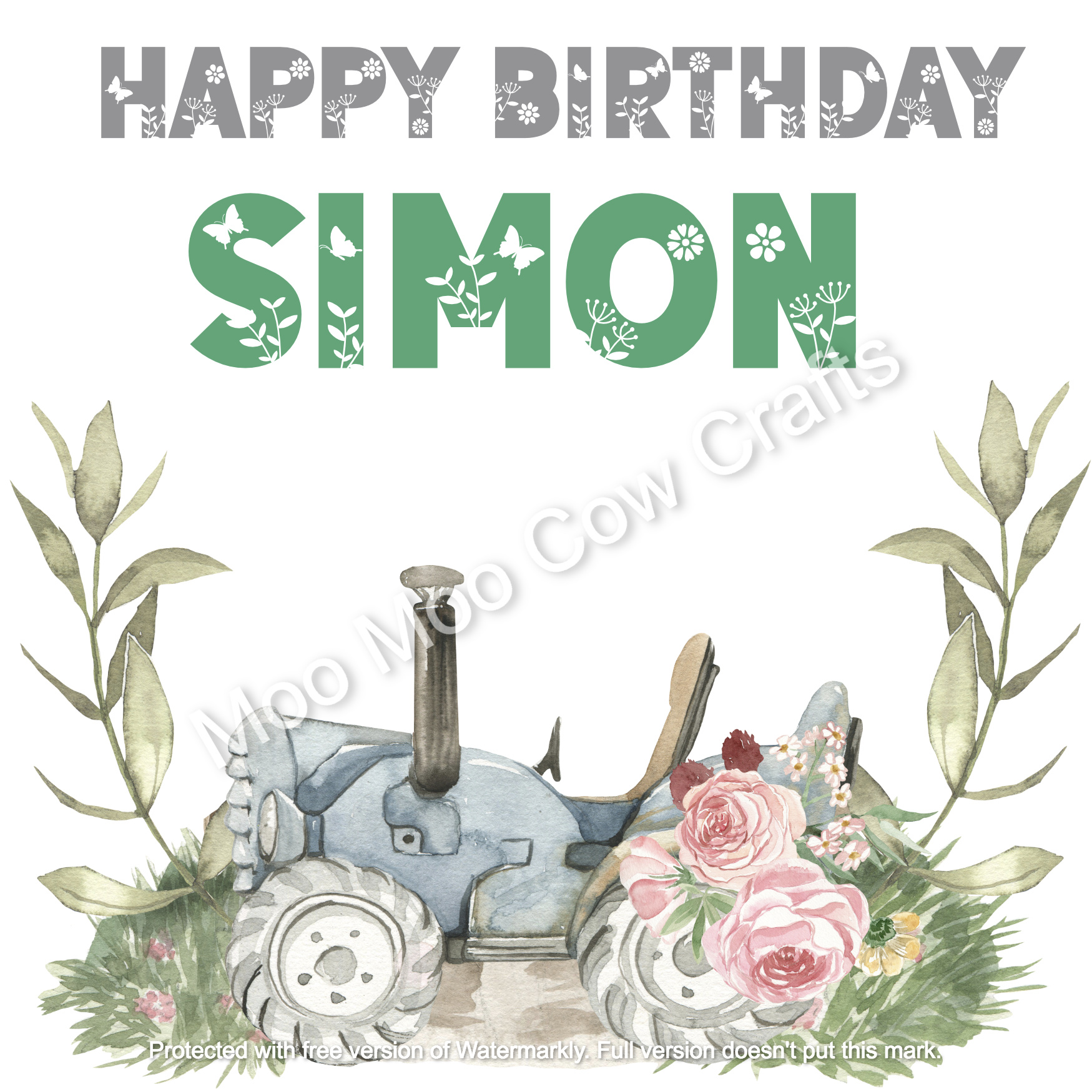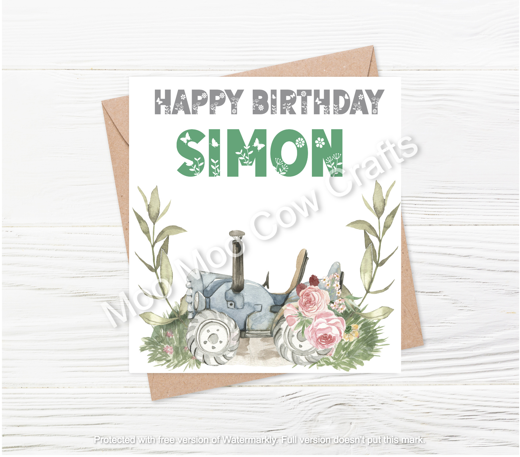 Down On The Farm – Tractor – Personalised Birthday Card