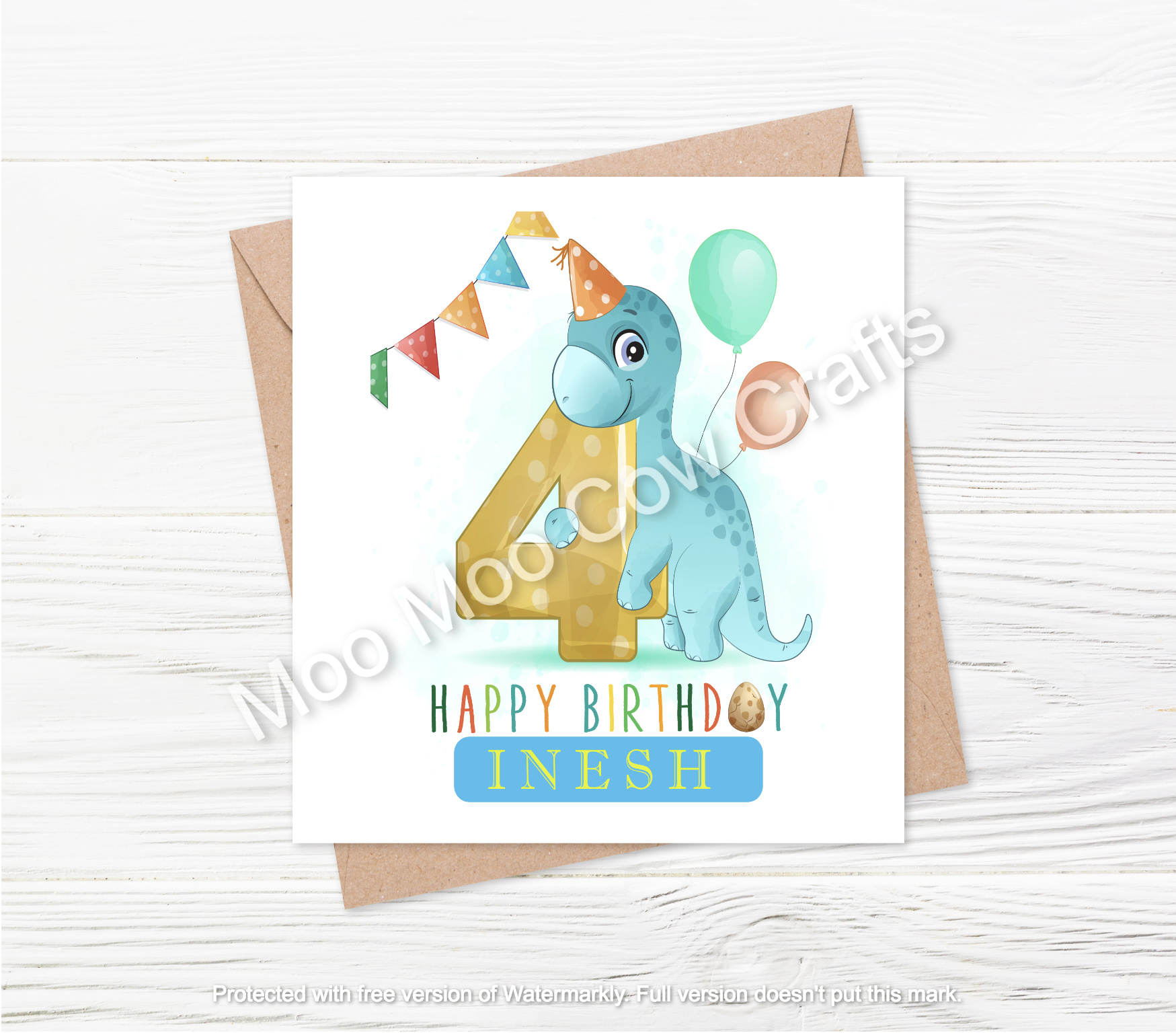 Happy 4th Birthday – Personalised Dinosaur Birthday Card