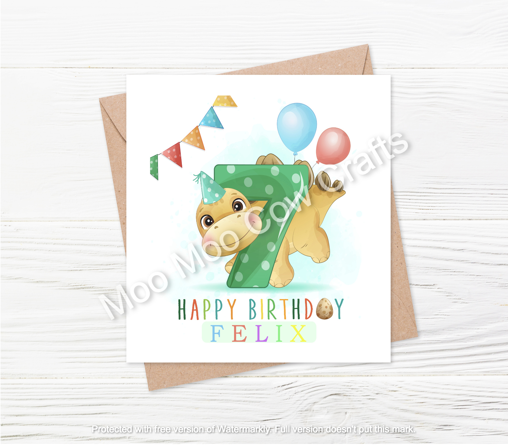 7th birthday personalised card for little dinosaur lovers everywhere.