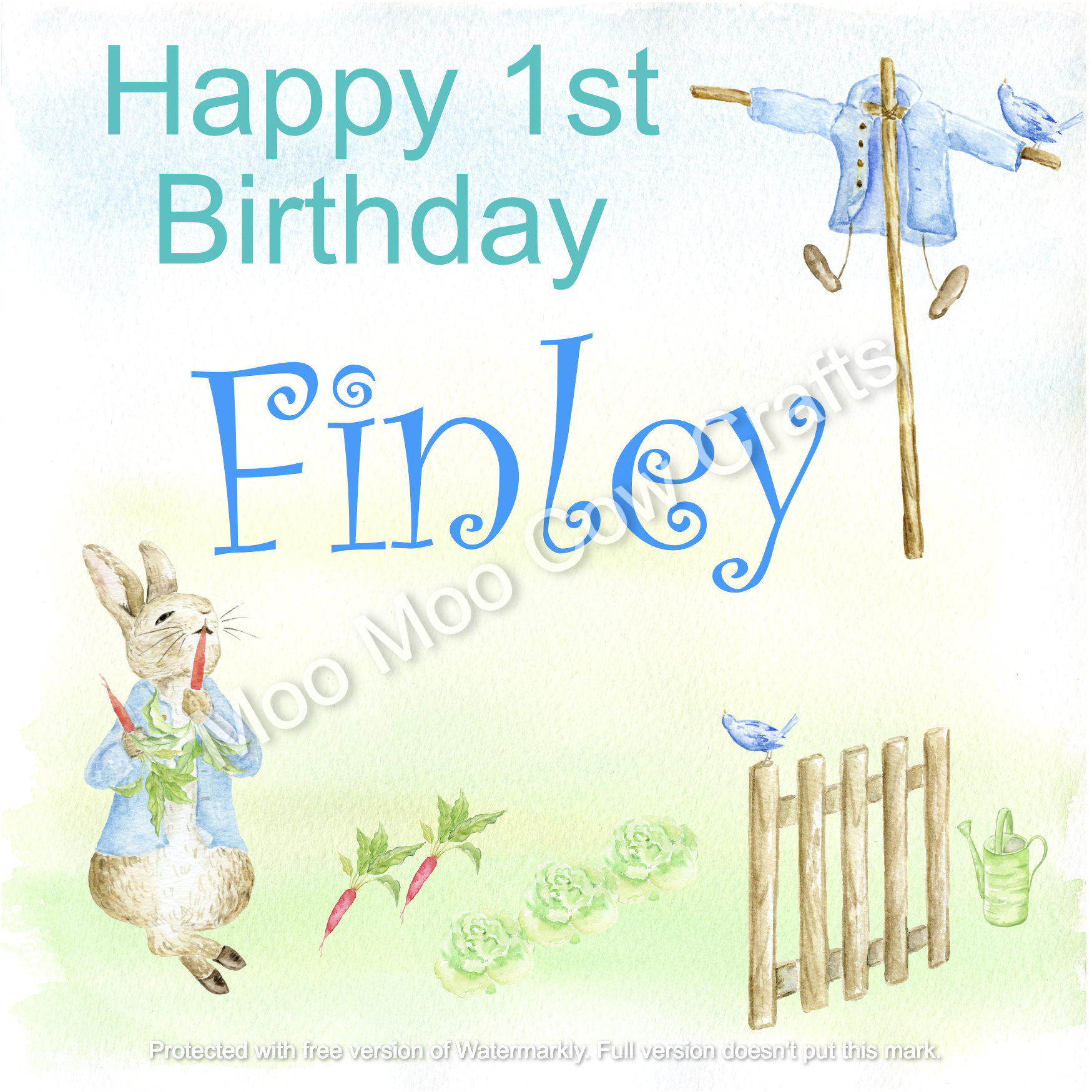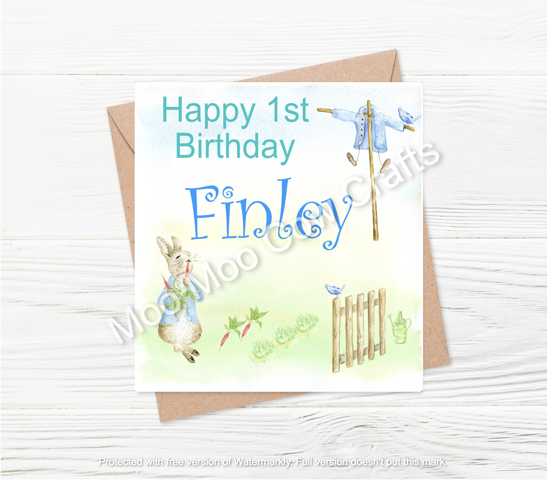In the Garden – Personalised – Cumbria Rabbit 1st Birthday Card