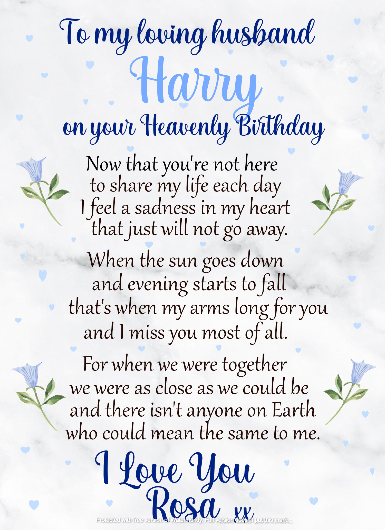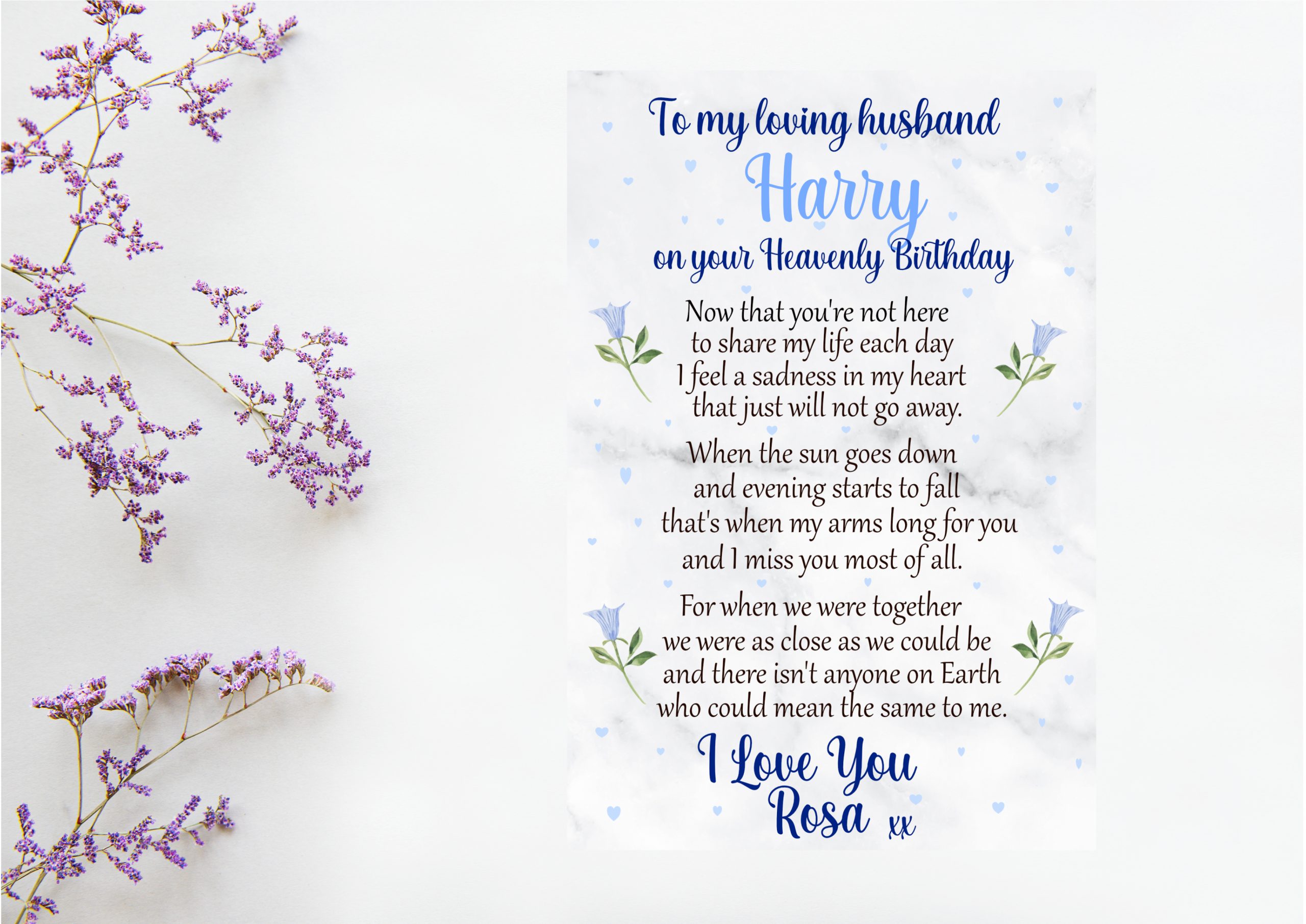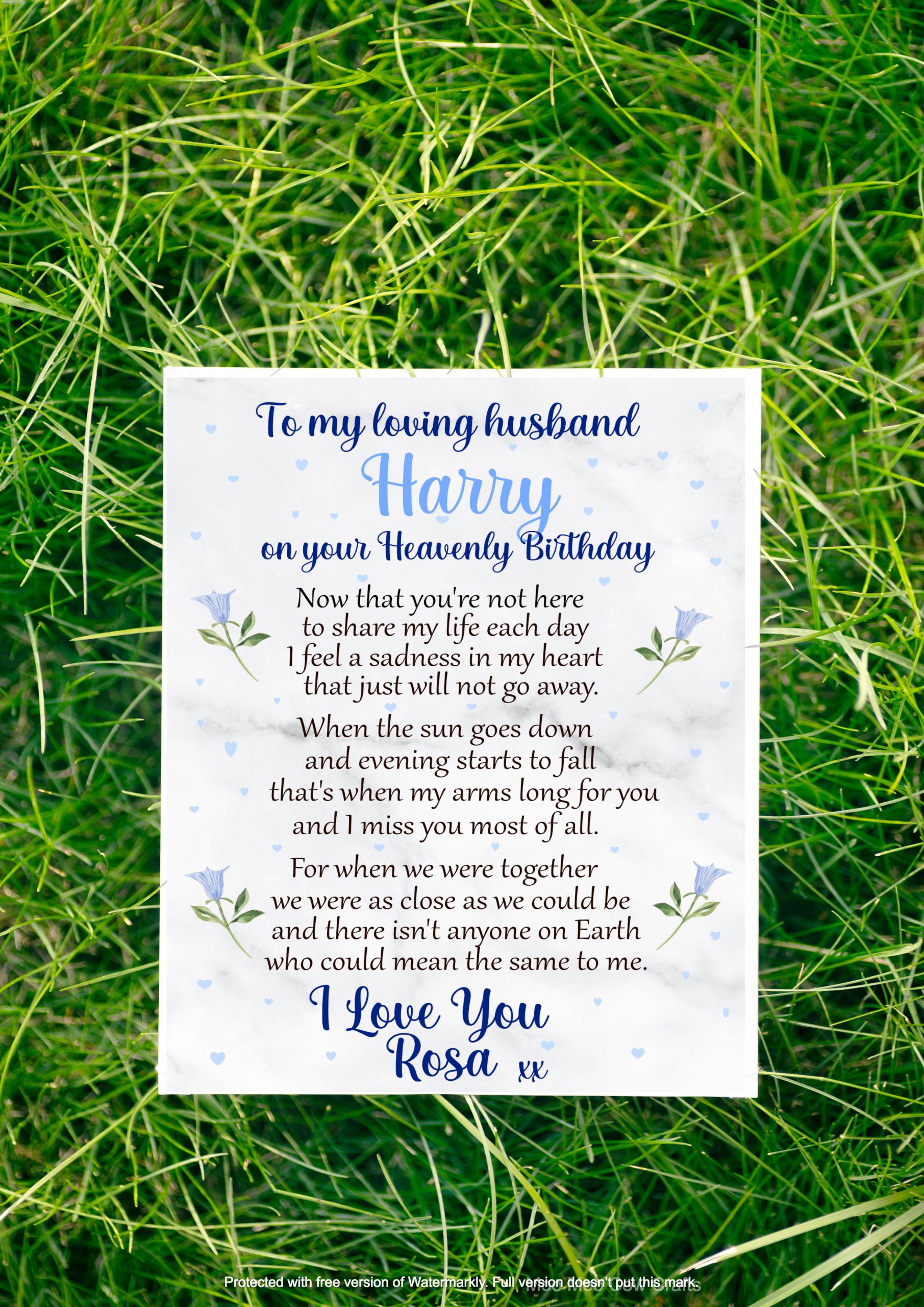 Husband Memorial Grave Card, Heavenly Husband Birthday Card, Husband Graveside Card, Graveside Card for Husband Hubby My Love
