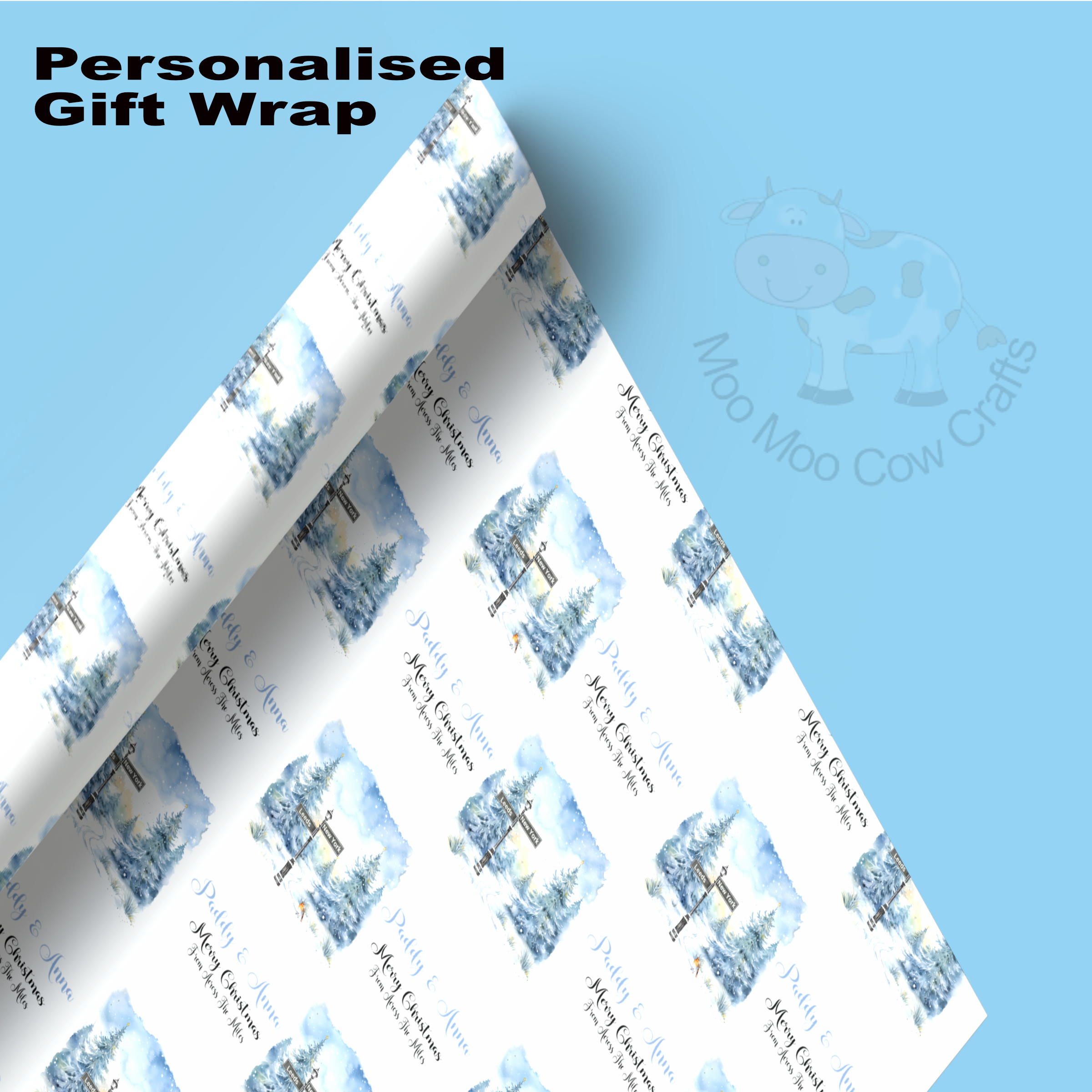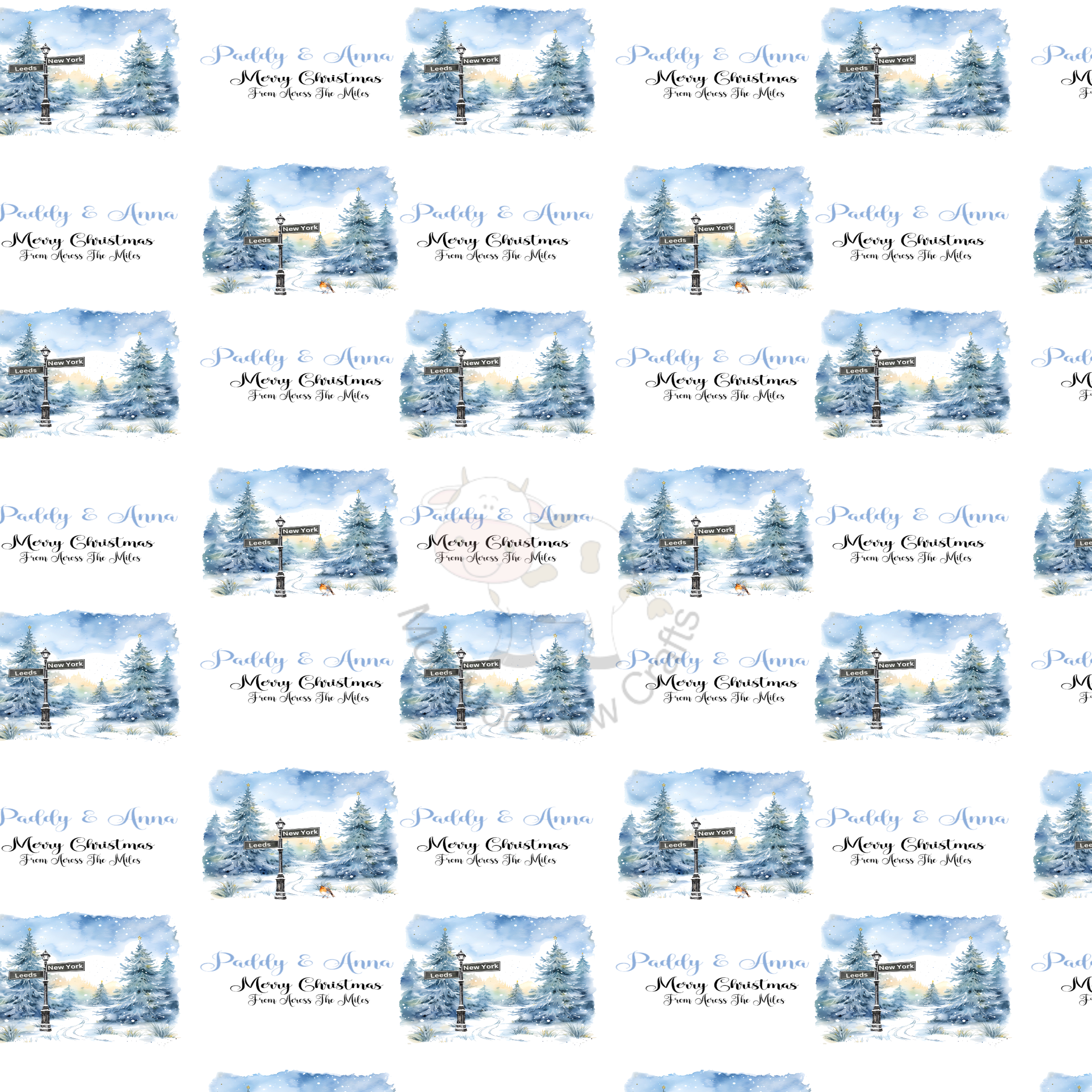 Personalised Across The Miles Christmas Card with matching wrapping paper