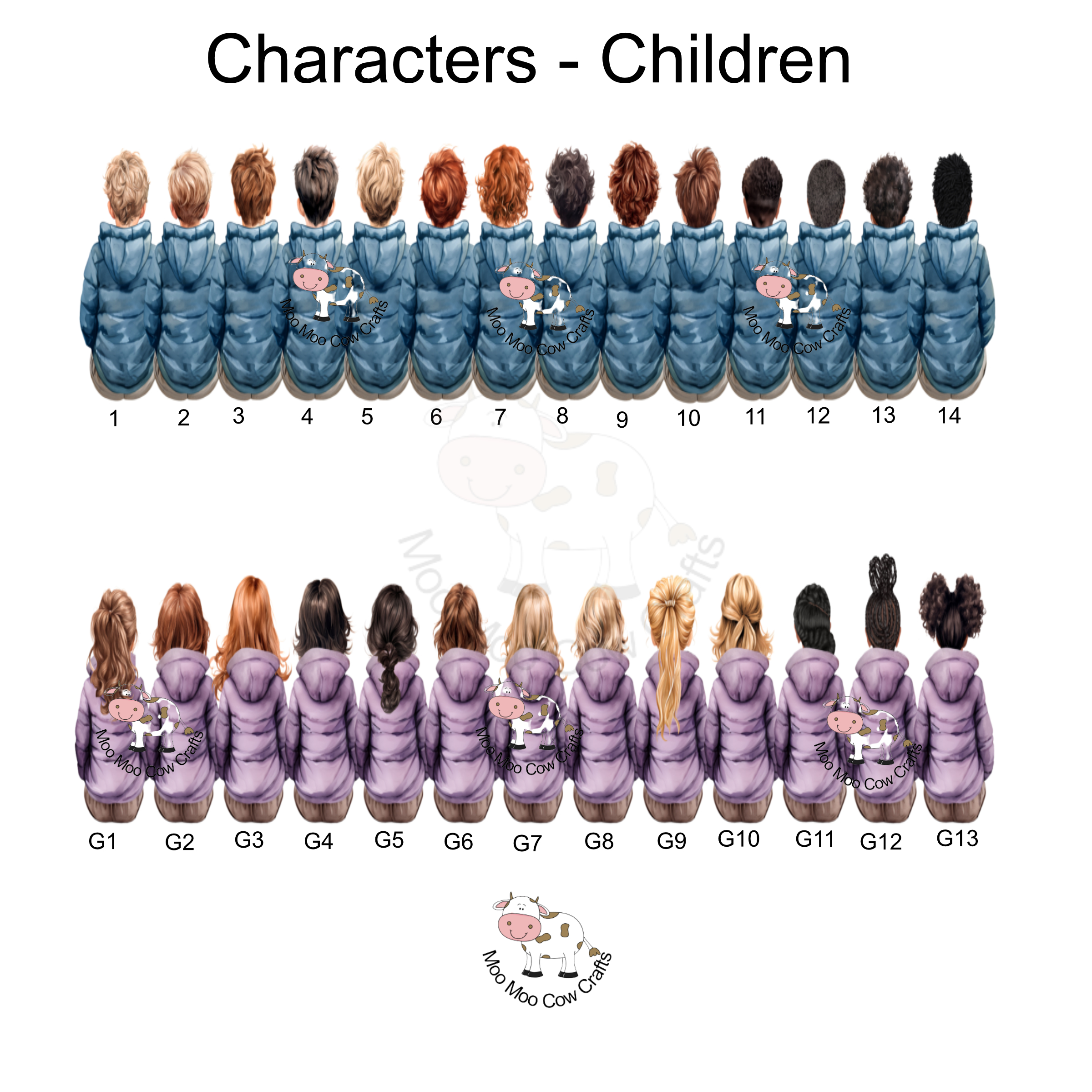 This is a really special card to send to someone who is far away at Christmastime, it can be fully personalised with 2 x locations as well as names, hair, hats, people etc.