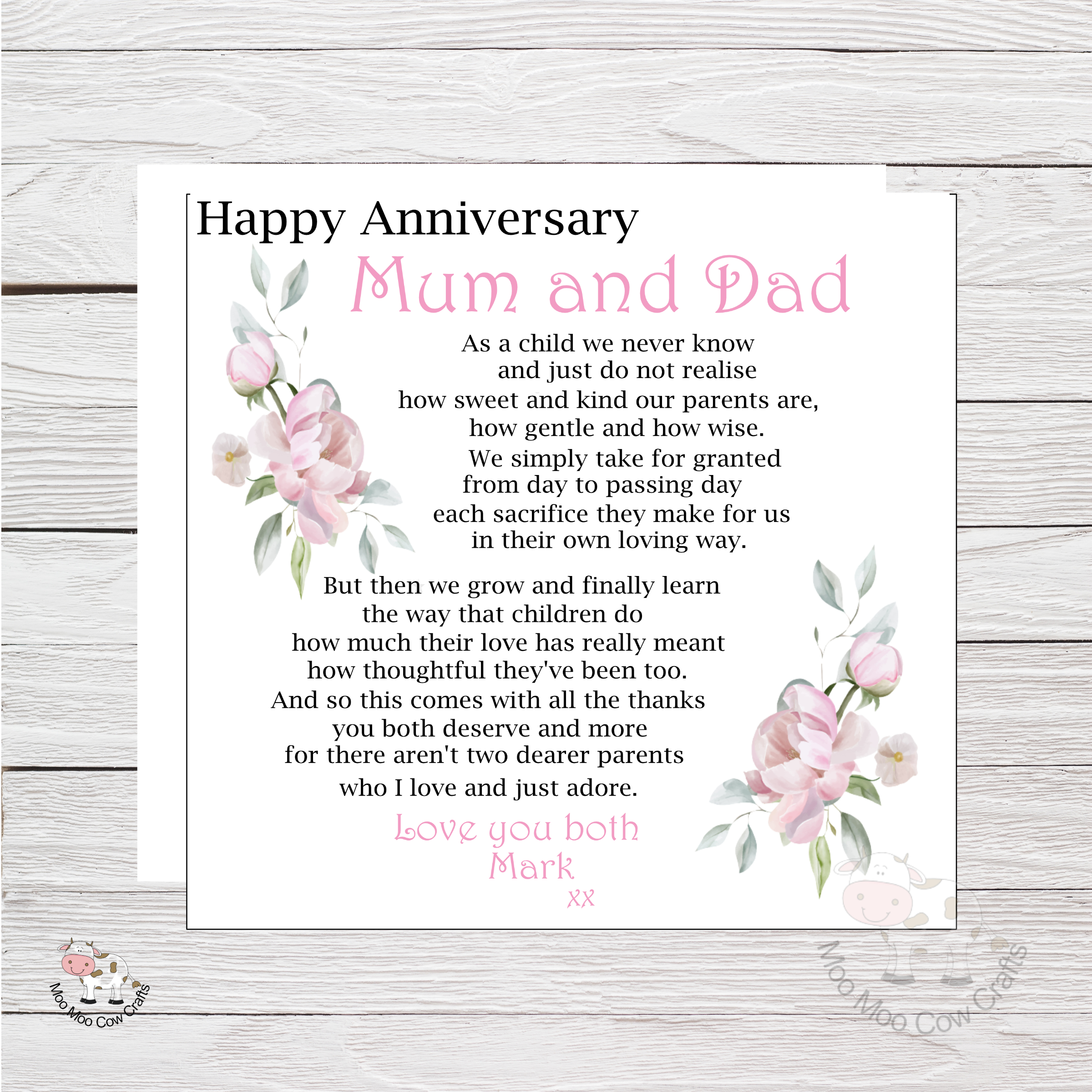 Wrapping Paper for Mum & Dad Wedding Anniversary with Matching Card, Personalised Sentimental Parents Anniversary Card, For Mum and Dad