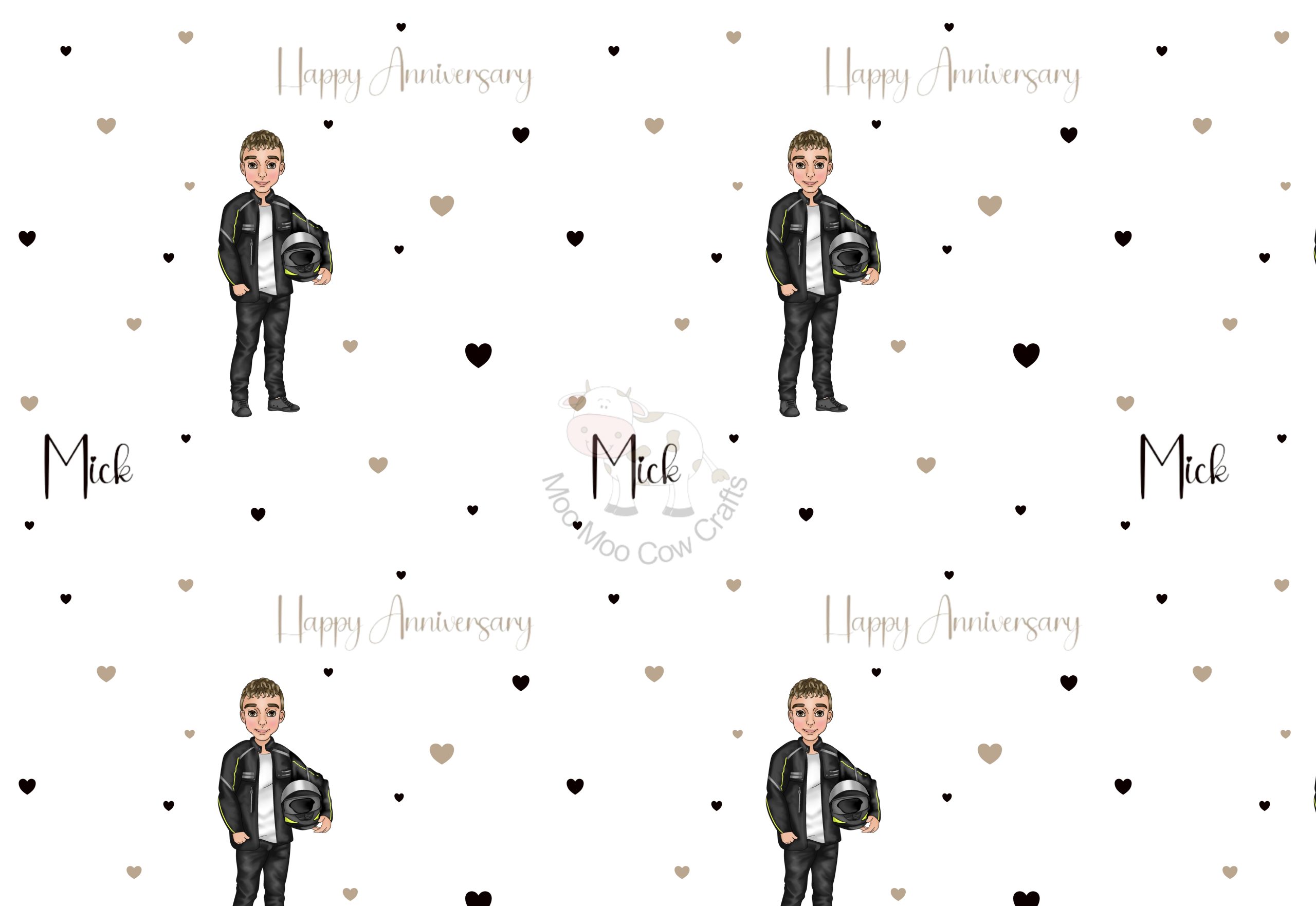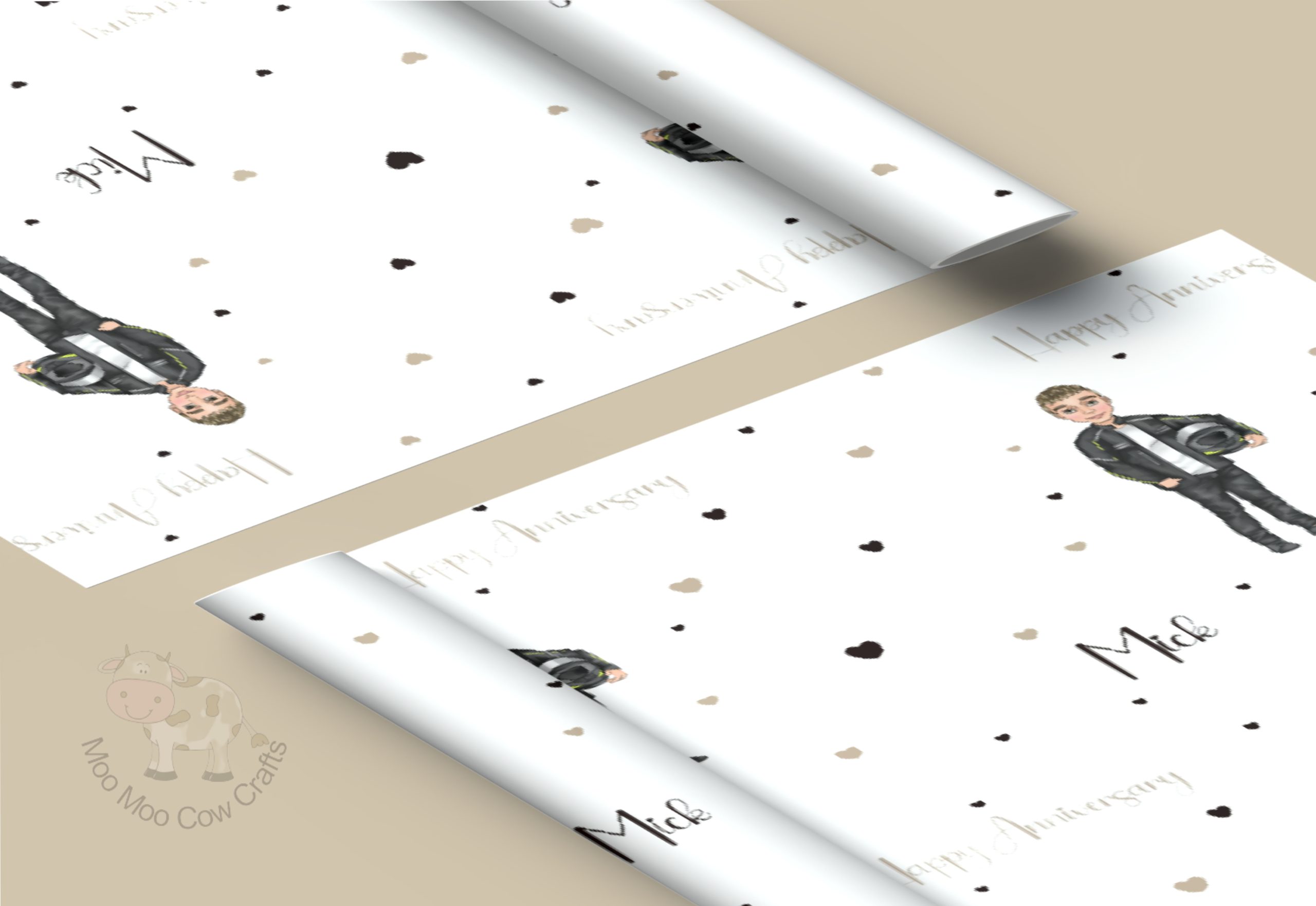 Personalised Biker Anniversary Wrapping Paper with Matching Card