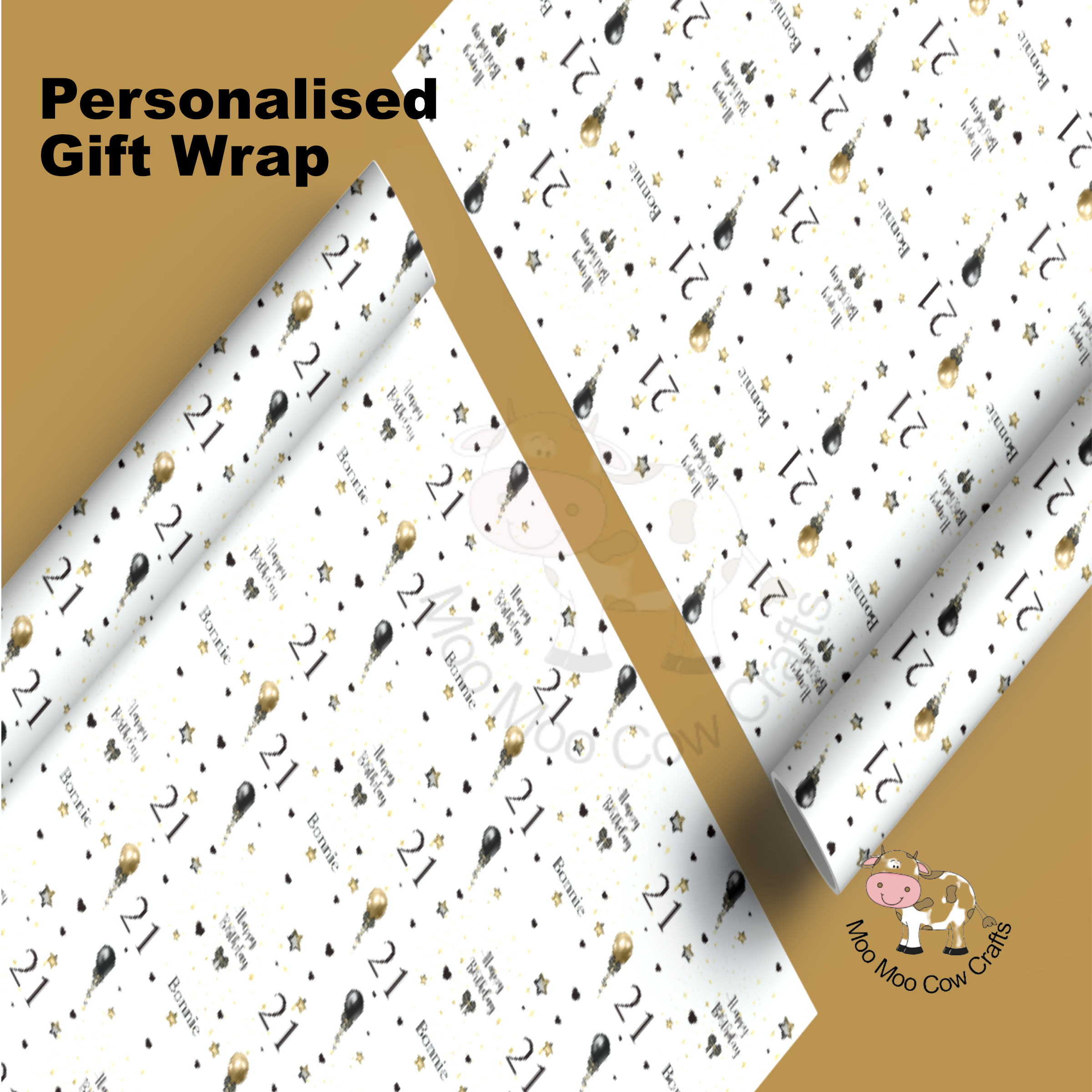 Personalised Birthday Wrapping Paper with matching Pin Badge and Card