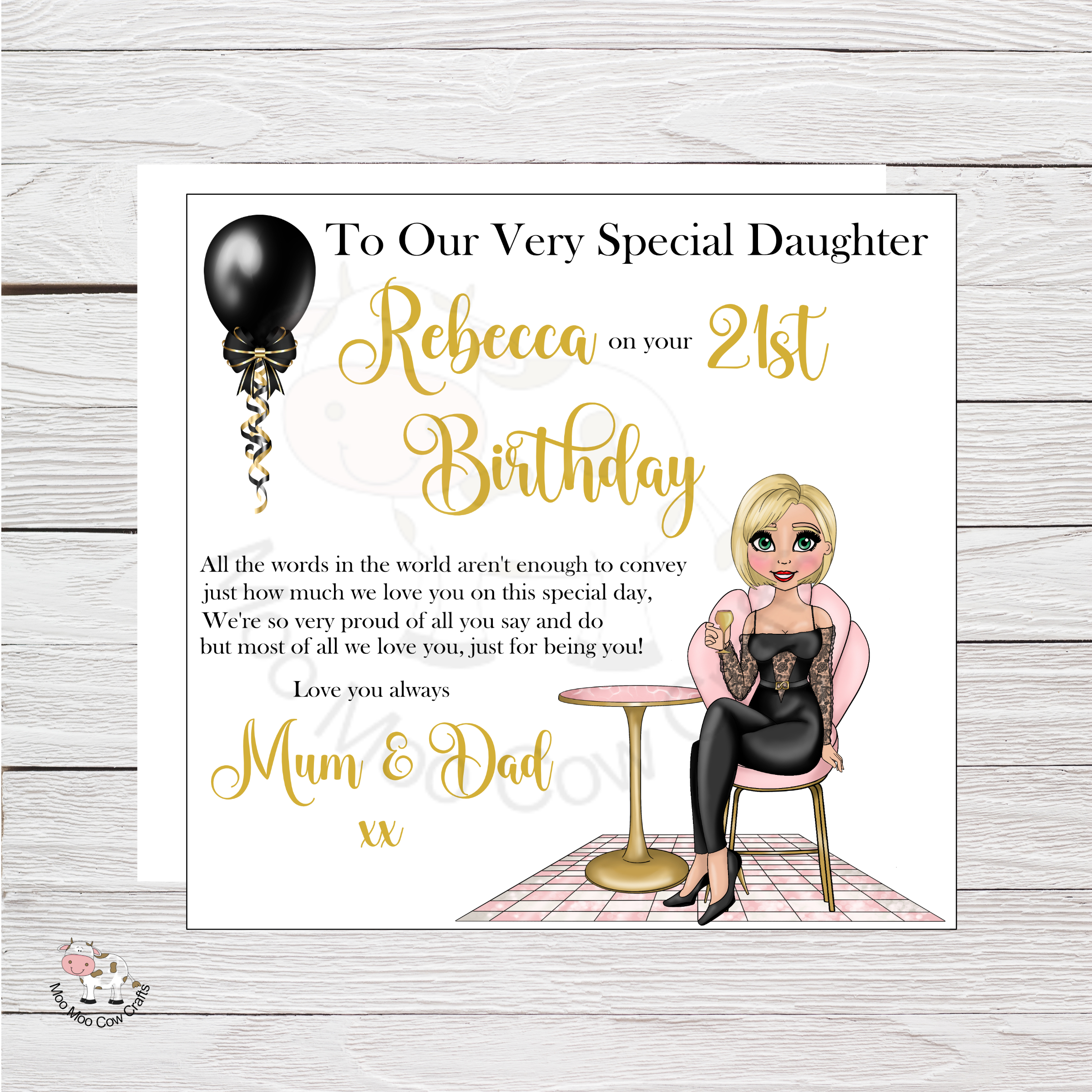 This is a beautiful card to give to a daughter on her special birthday, it can be amended to be 18th, 21st or any other birthday and can be altered to be from one or two people.