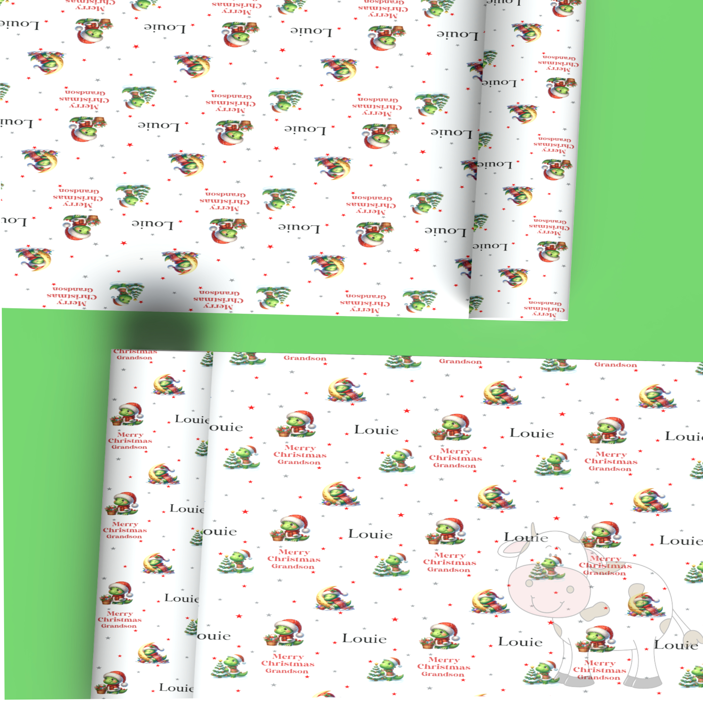 Personalised Cute Dinosaur Christmas Wrapping Paper