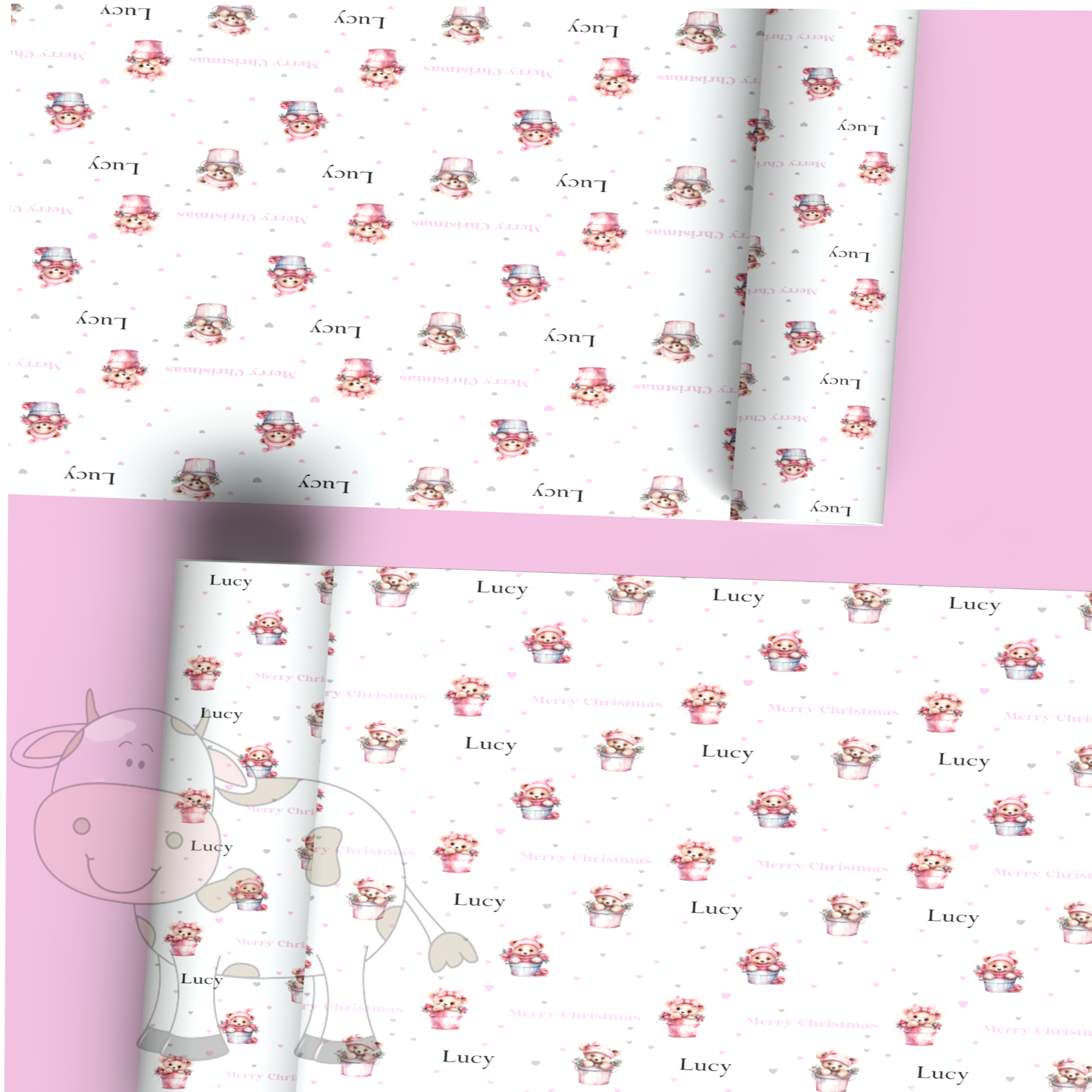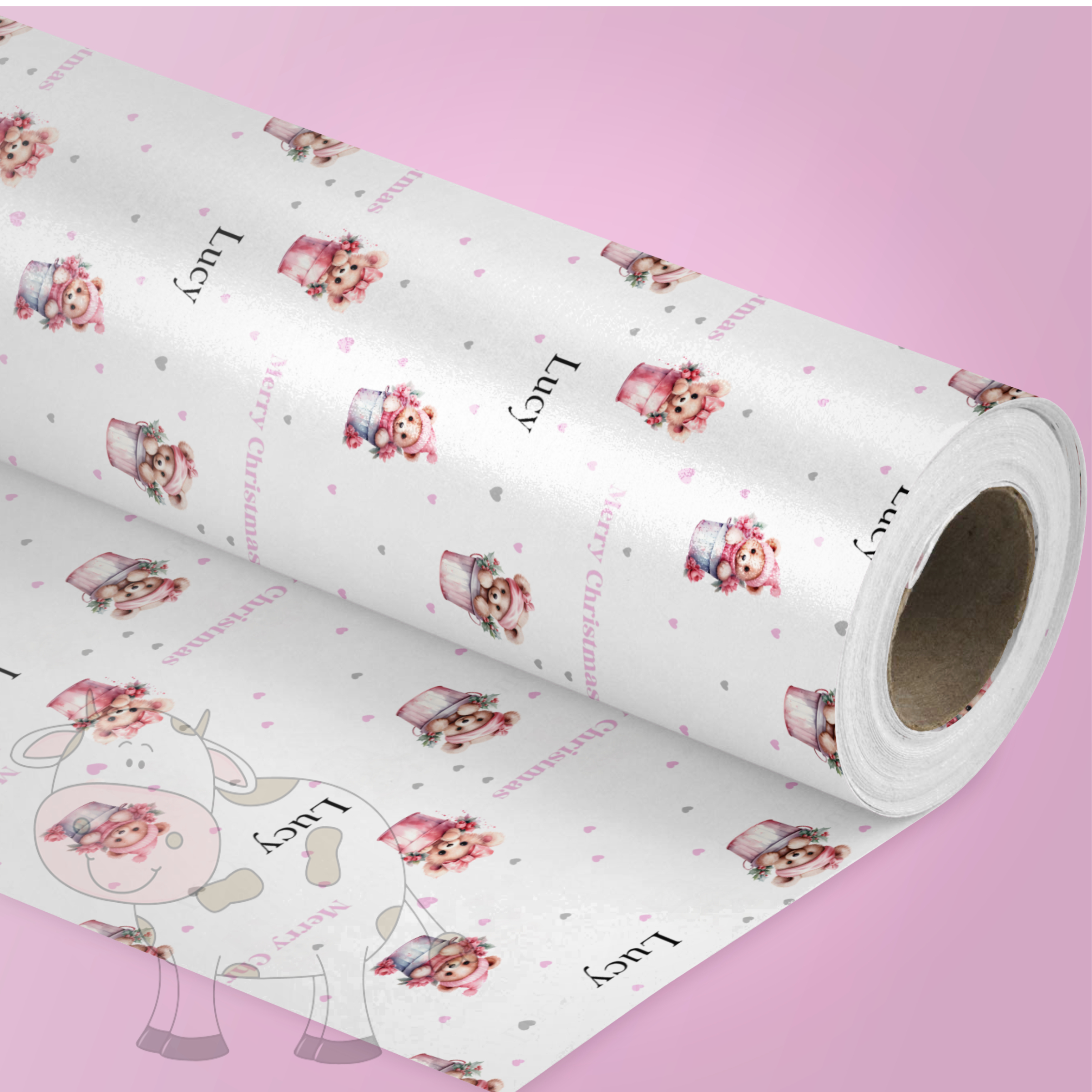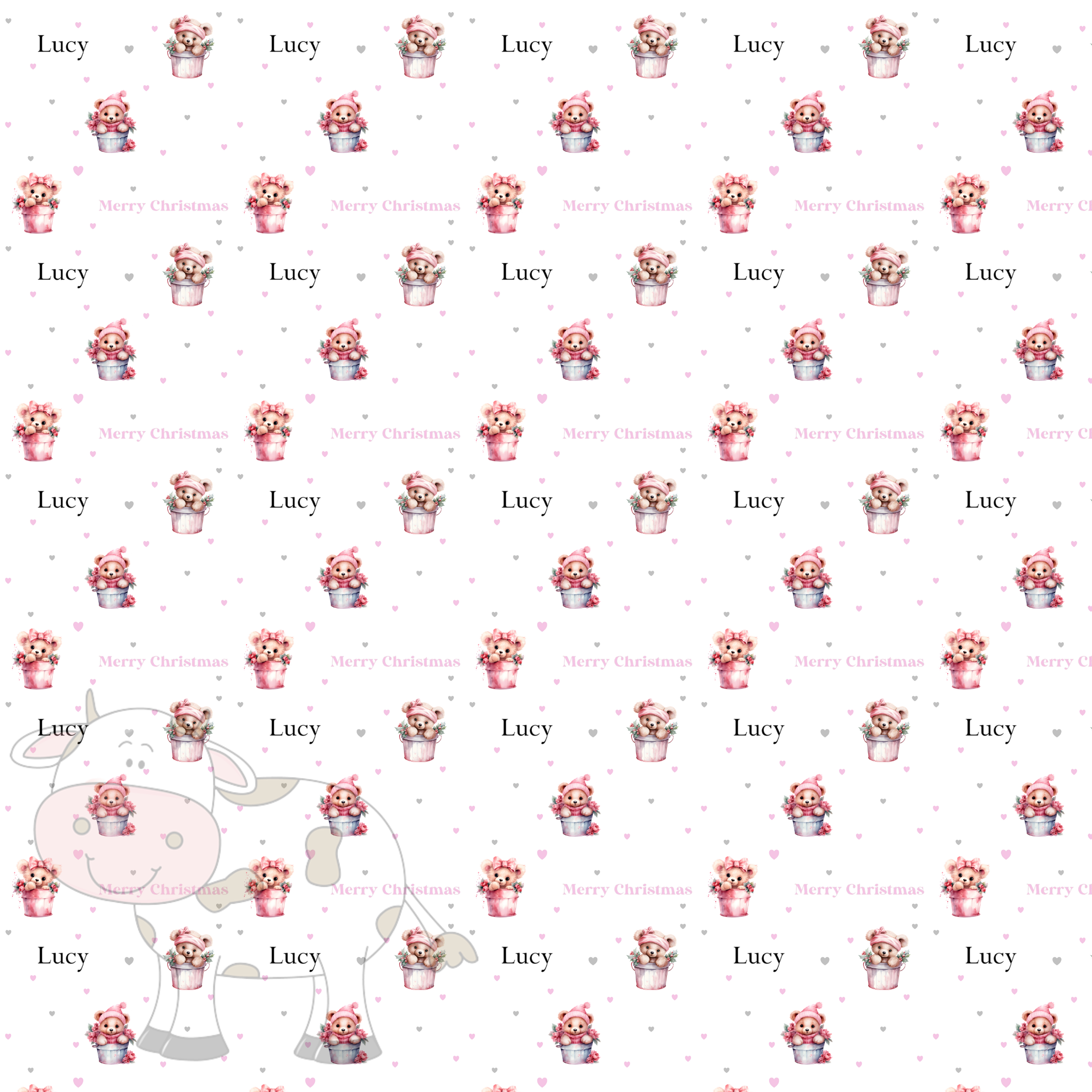 This is a beautiful Christmas wrapping paper with a pink teddy design, it is also available in a blue teddy.