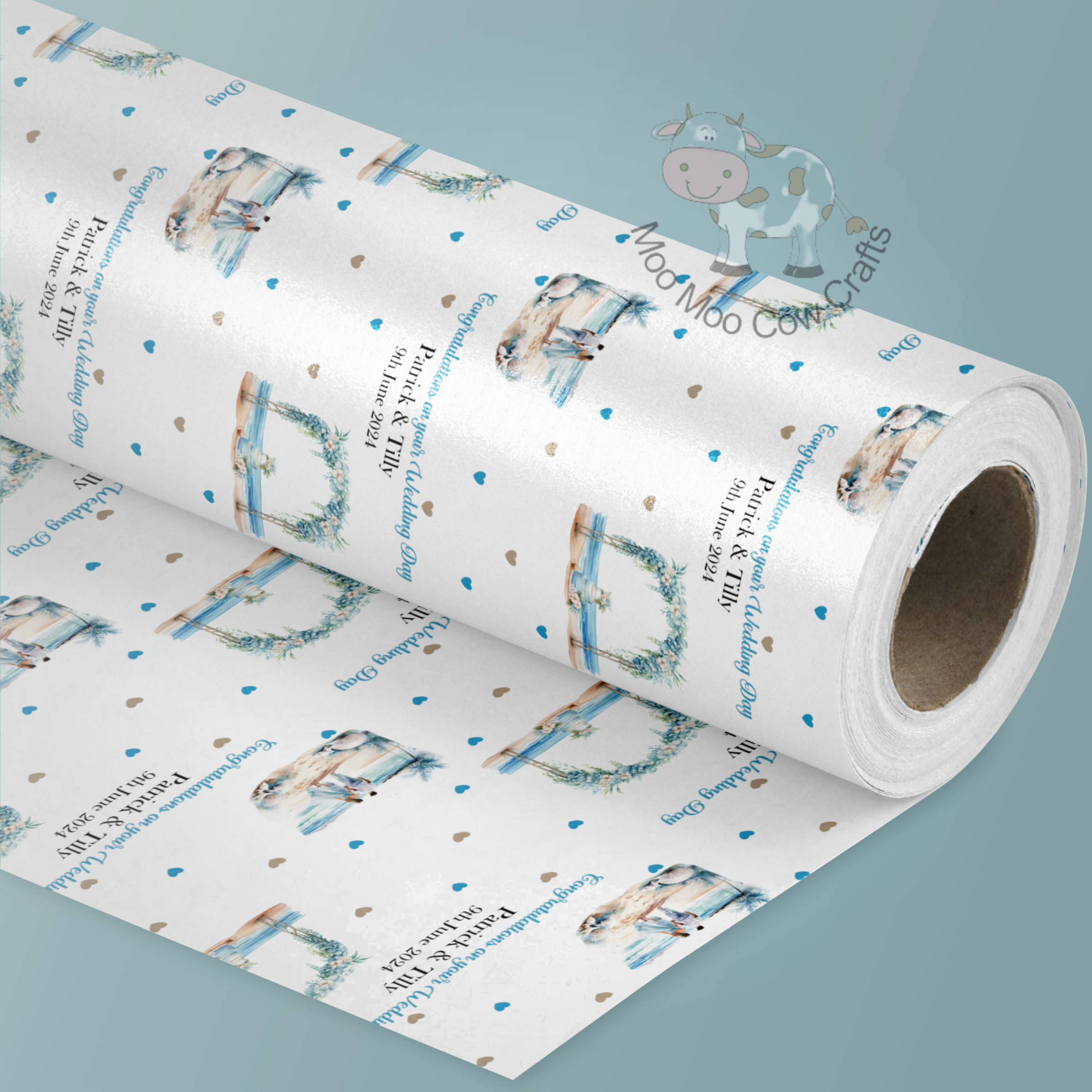 Personalised Destination Overseas Wedding Gift Wrapping and Matching Card