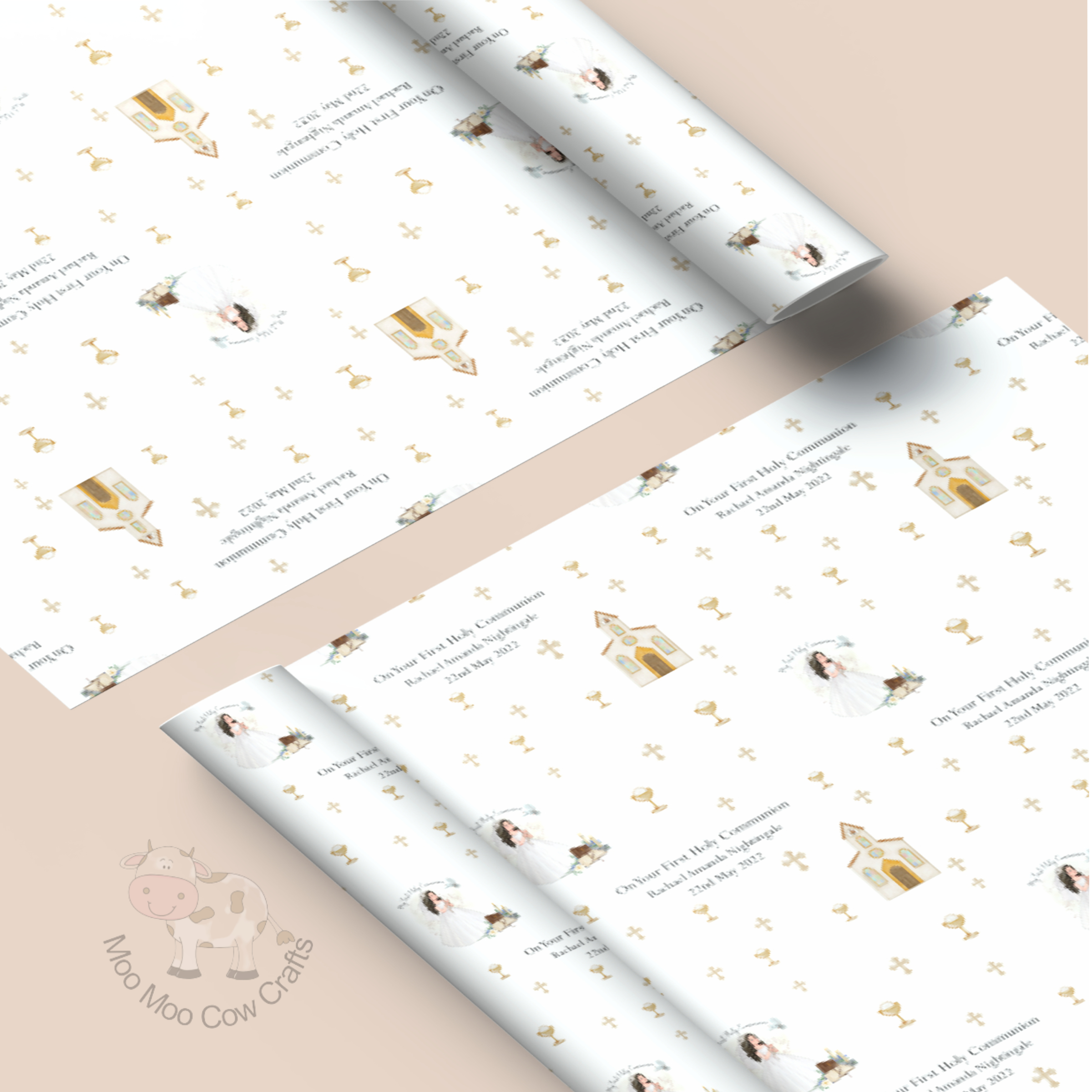 Personalised First Holy Commnunion Wrapping Paper with Matching Congratulations Card