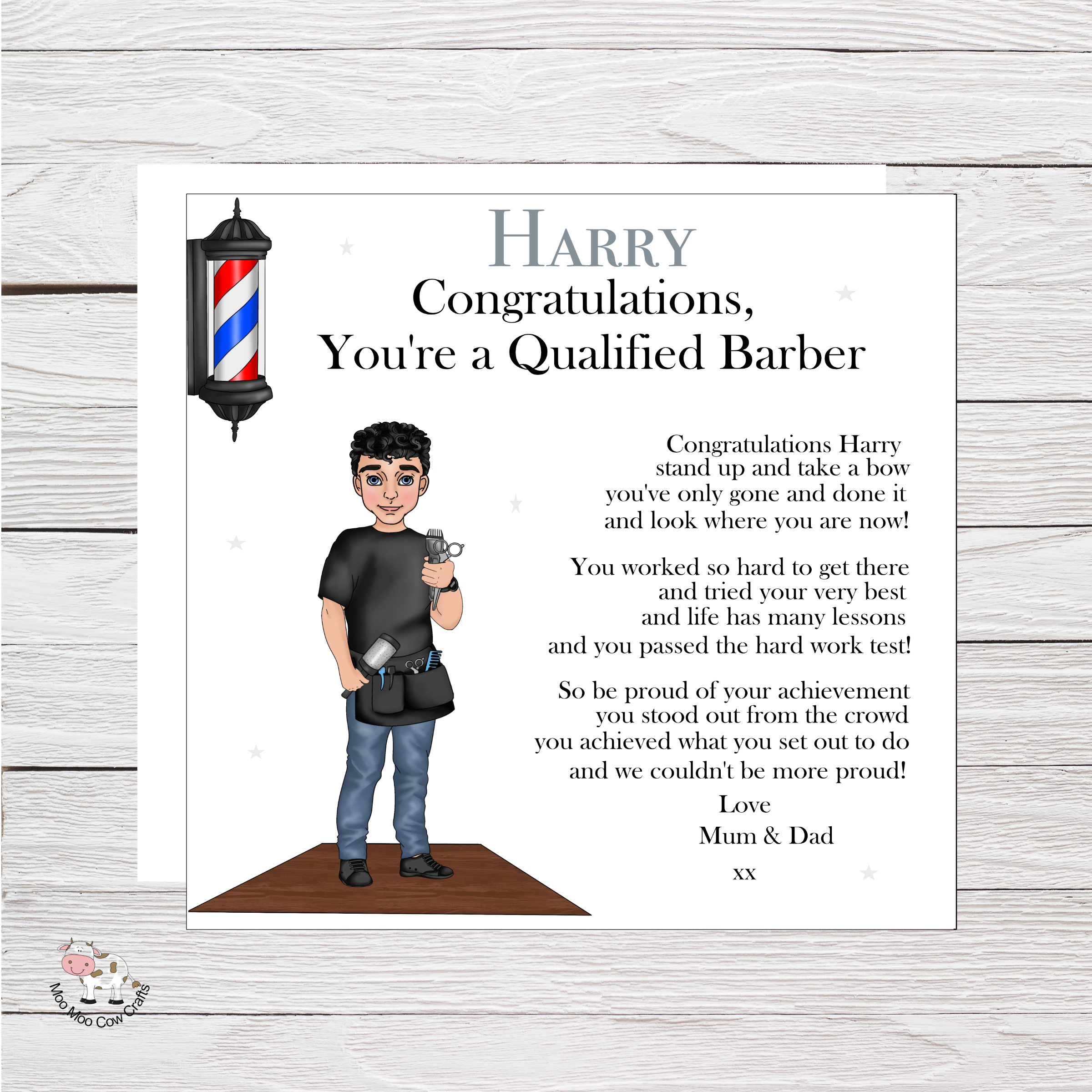 Please advise skin, hair and eye colour and which design, barber or hairdresser.