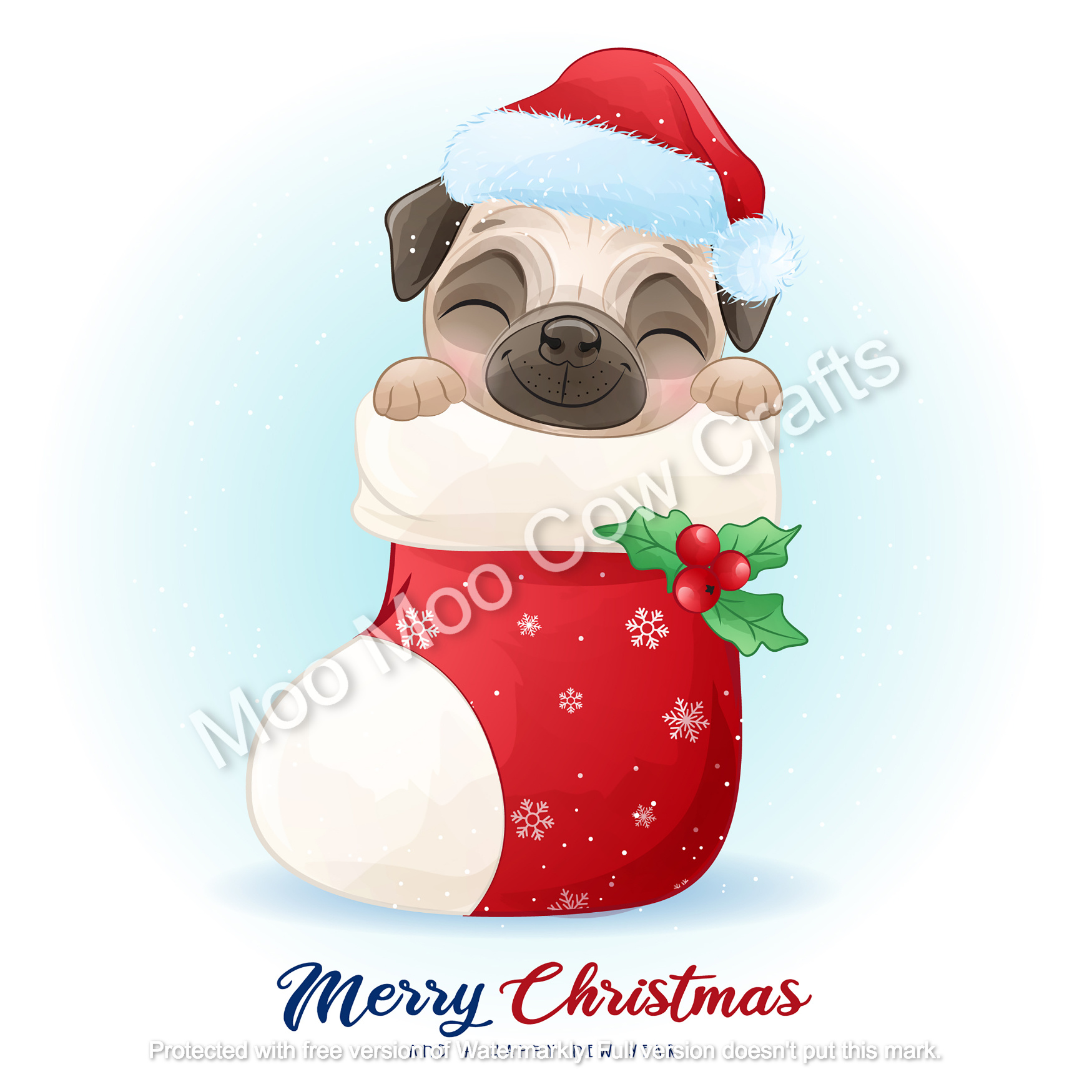 Pick your own pug for your Christmas card, choose from stocking, balloon, gift box or hat box or if you wish to have more then one pug well that’s OK too!