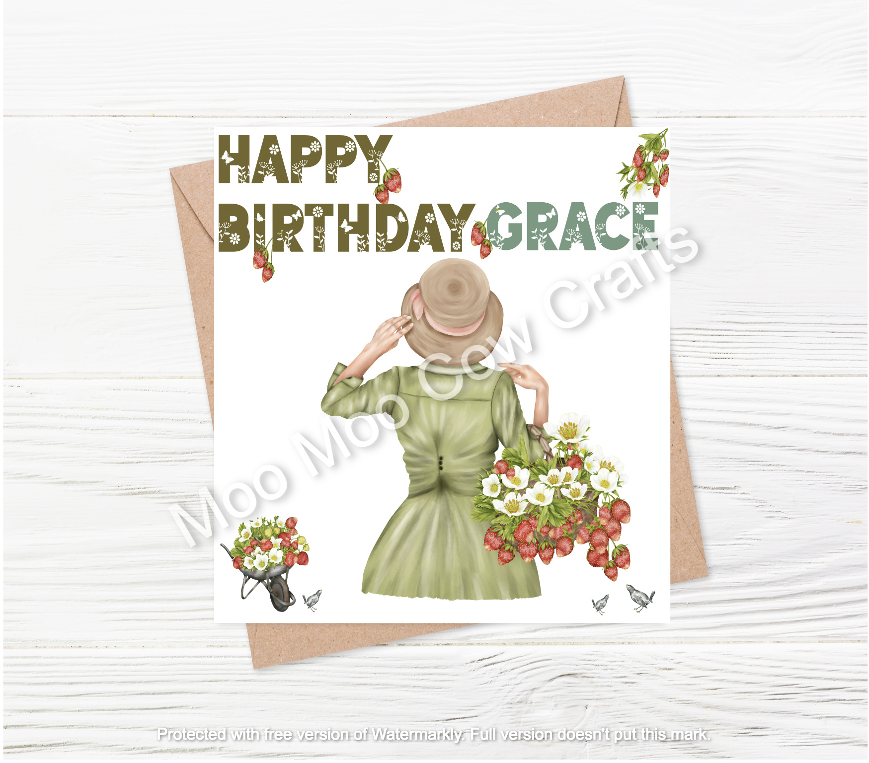 Strawberry Picking Personalised Birthday Card – Name can be altered