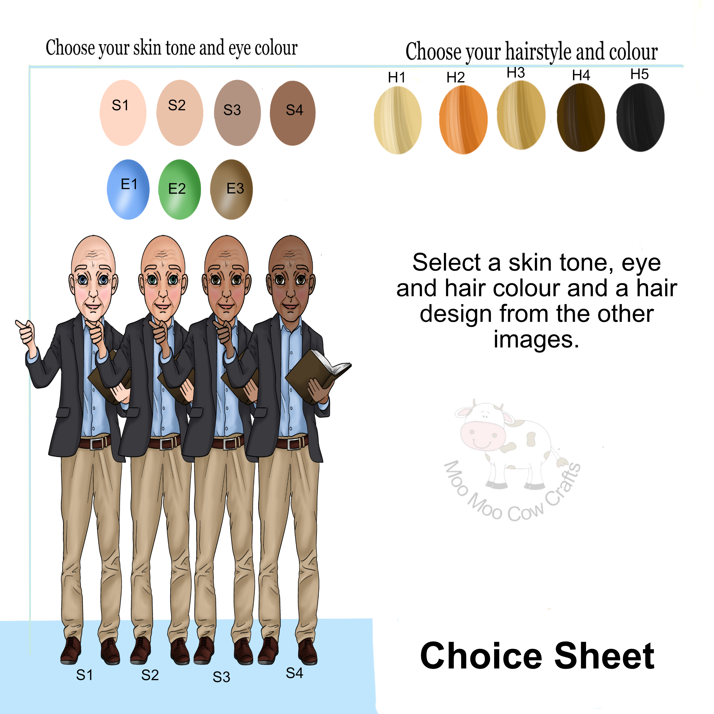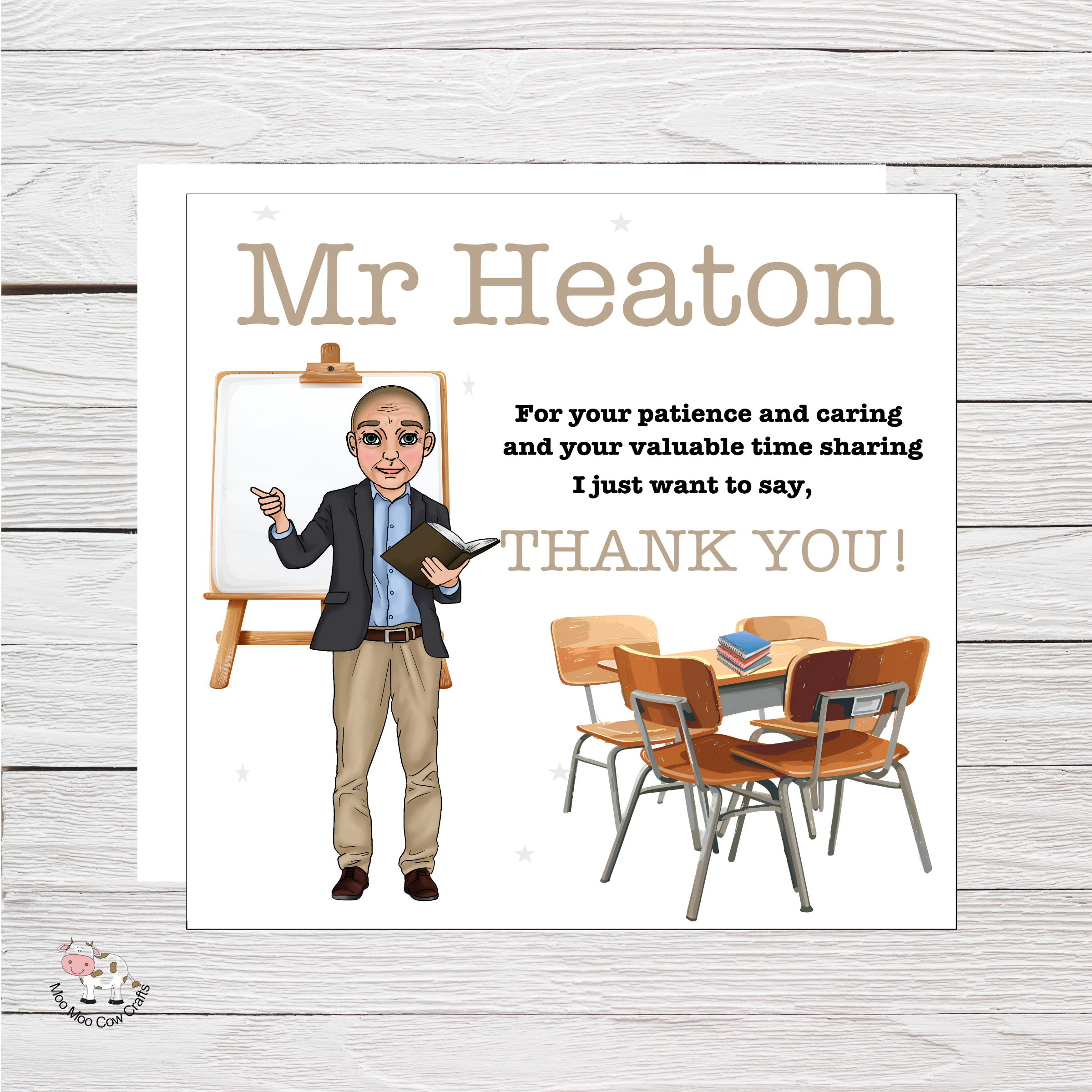 A special card for a male teacher to say Thank You. Just pick which of the images most resembles the man and include the code in Notes at the time of ordering and indicate her eye colour.
