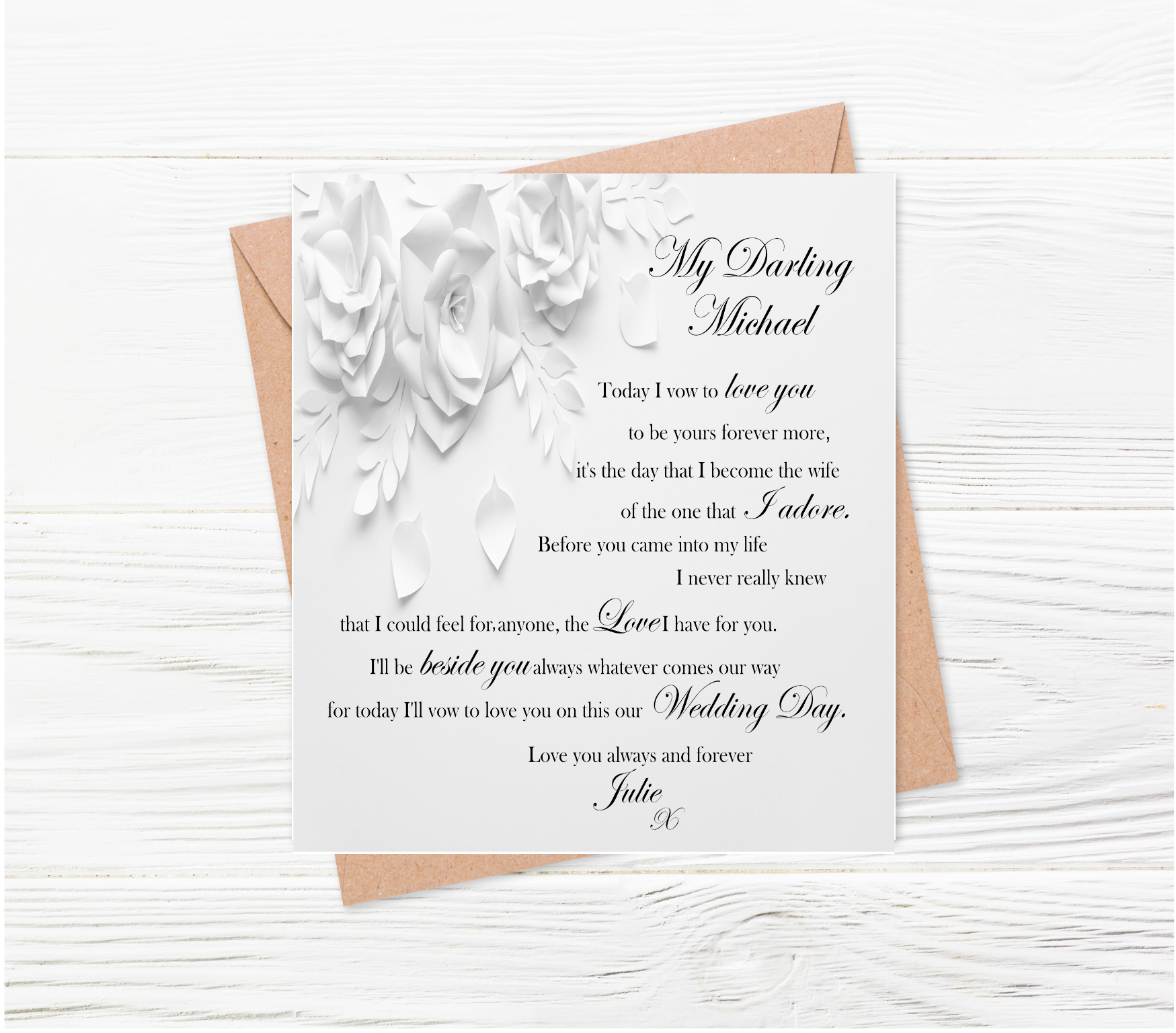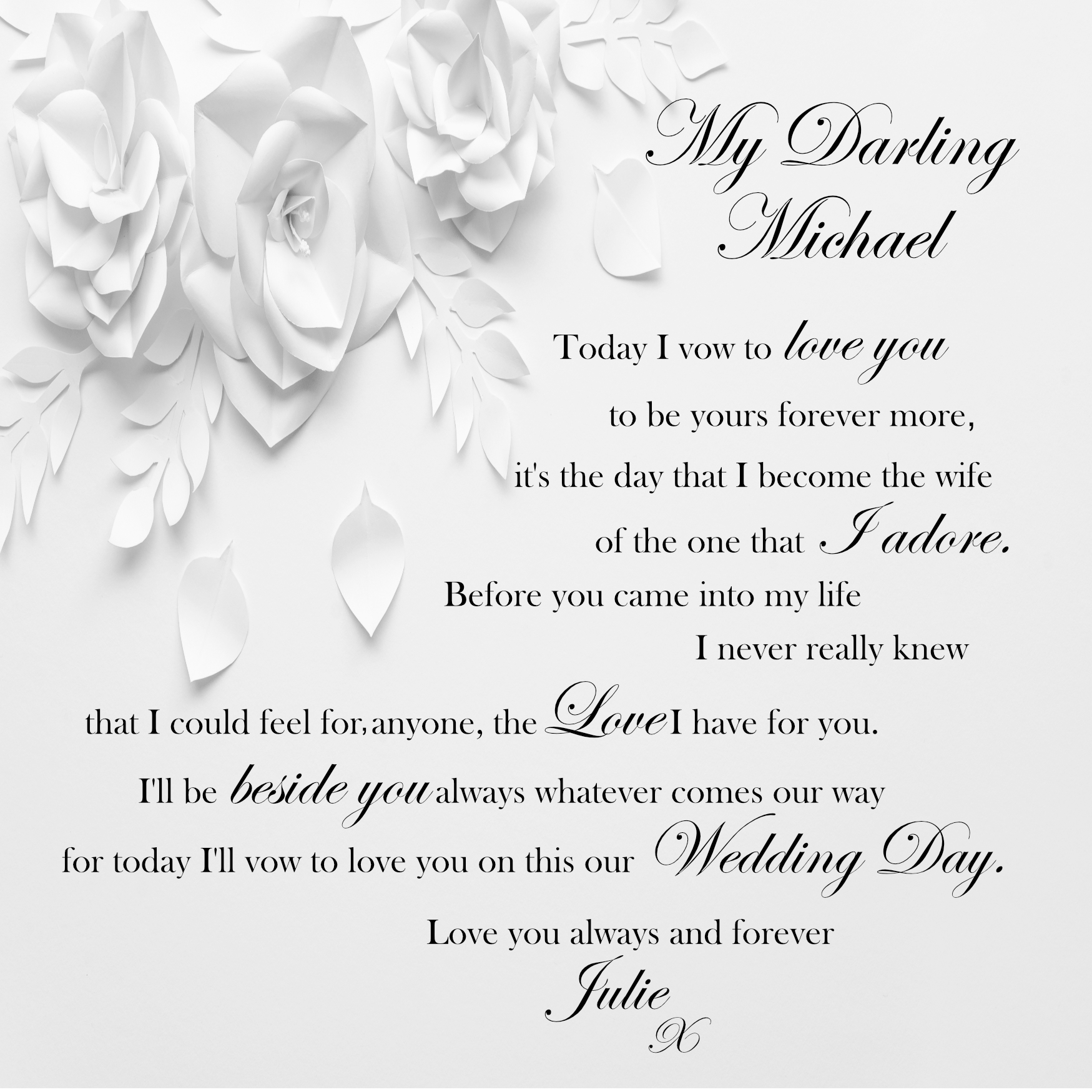 To my partner on our wedding day is a beautiful heartfelt message and can be personalised.