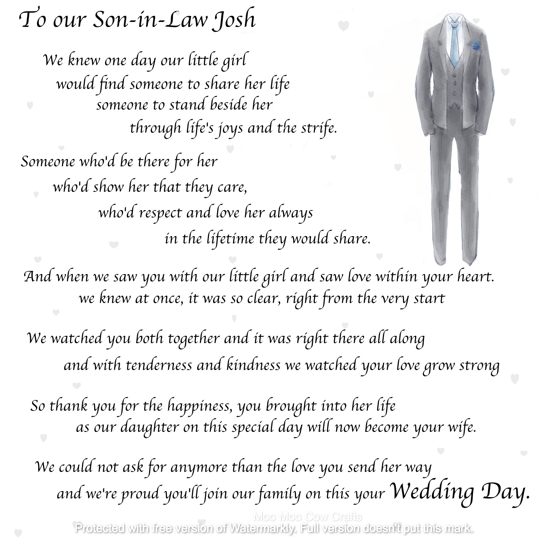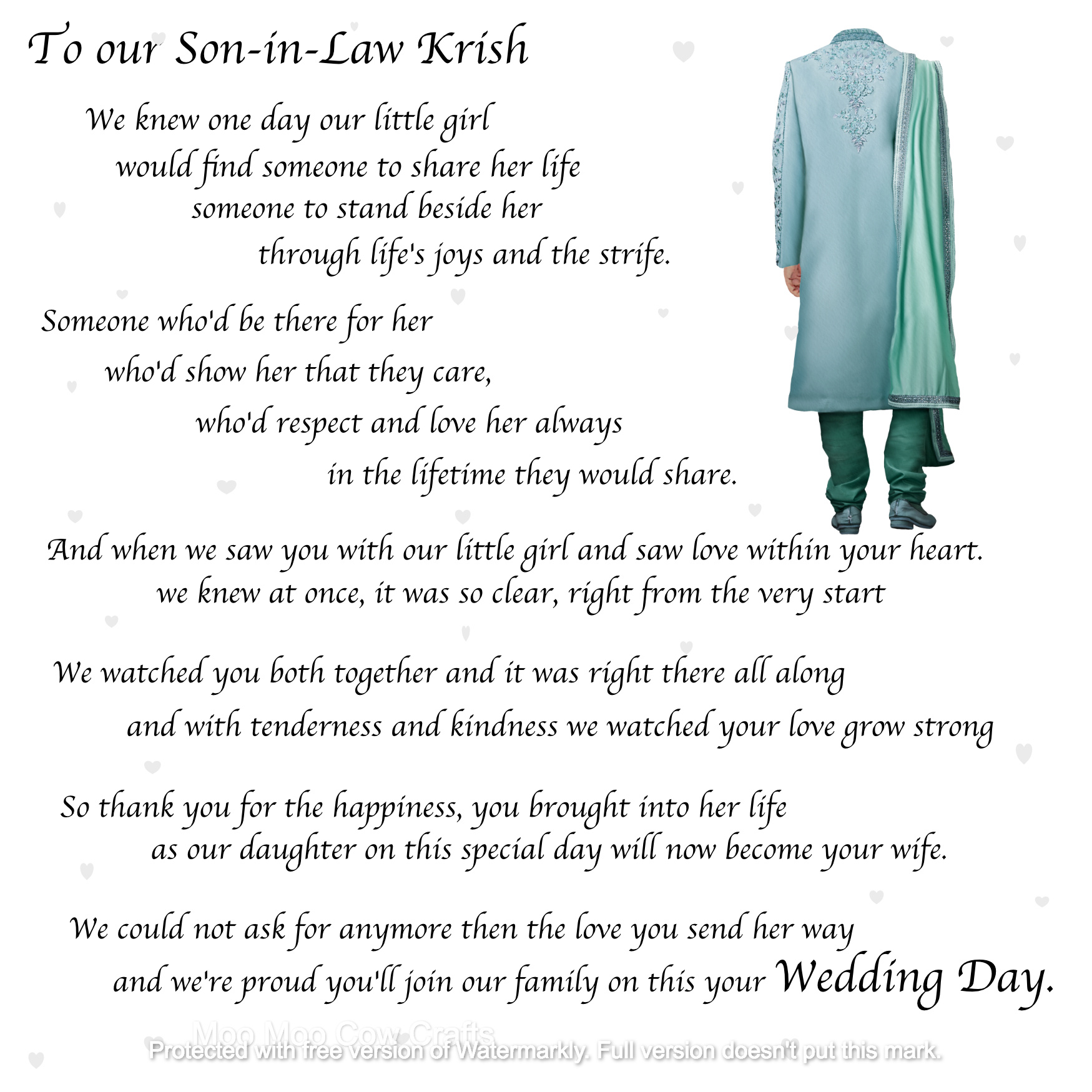 To Our new Son-In-Law on his Wedding Day – Asian outfit, Kilt or Grey suit